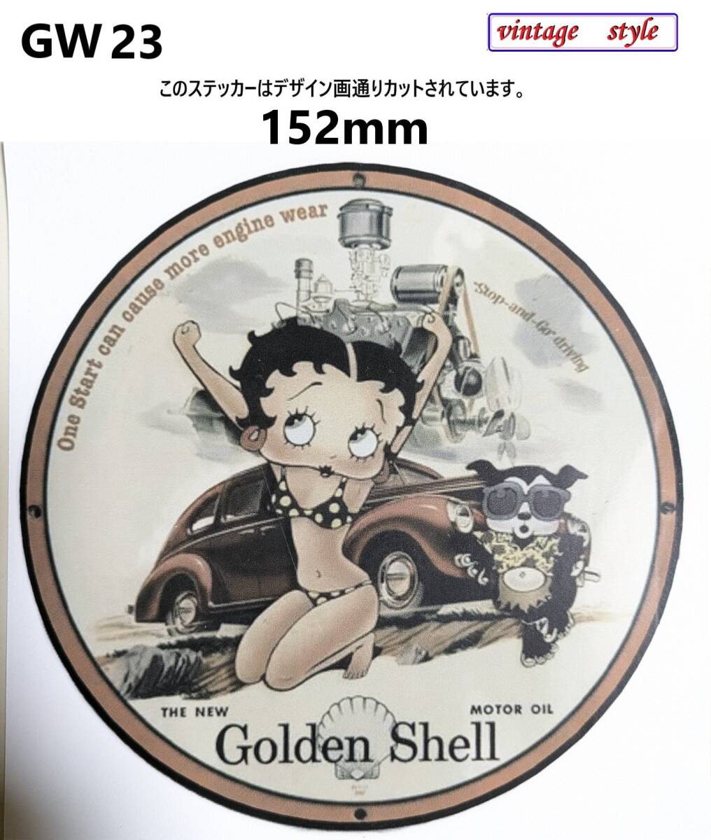 > GW24-5 特価 ヴィンテージスタイル SHELL シェル ベティ オイルステッカー ガソリンステッカー ダメージ加工 レトロ デカール