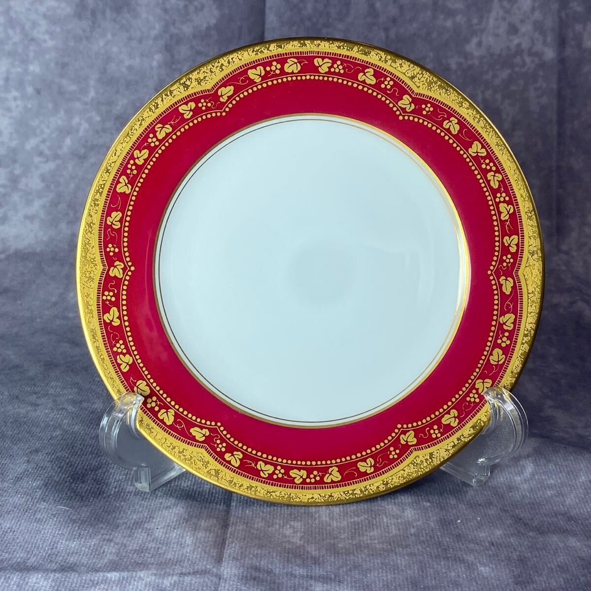 - 美品 大倉陶園 アレキサンドリーヌ プレート 金彩 OKURA 大倉 赤 金彩 16.5cm デザートプレート ケーキ皿 葡萄紋 高級ライン 高貴な赤 d