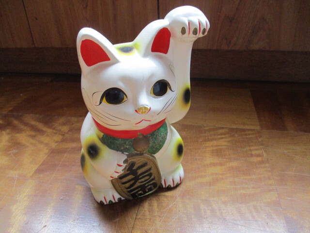 - 招き猫 白猫 19cm 陶器置物 商売繁盛縁起物人形郷土玩具