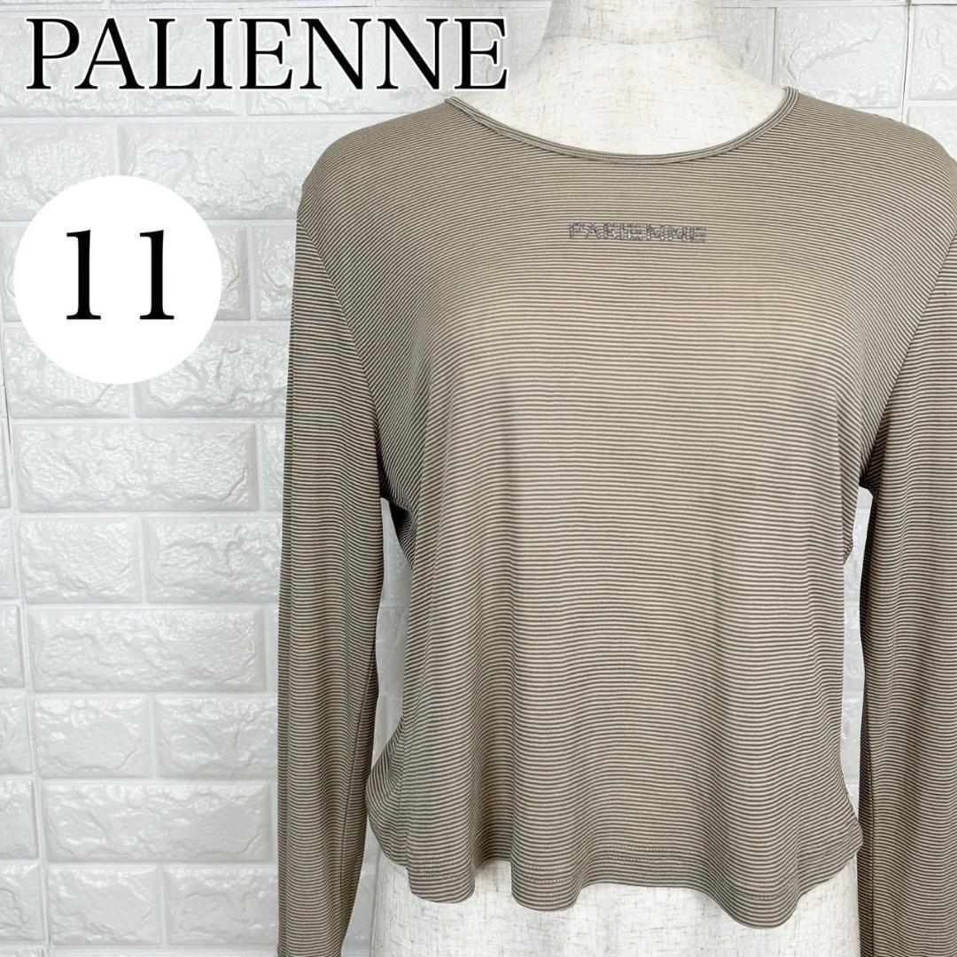 > 【AA1159】 パリエンヌ PARIENNE L ロングTシャツ ストライプ ラインストーンロゴ カットソー 長袖トップス ボーダー柄
