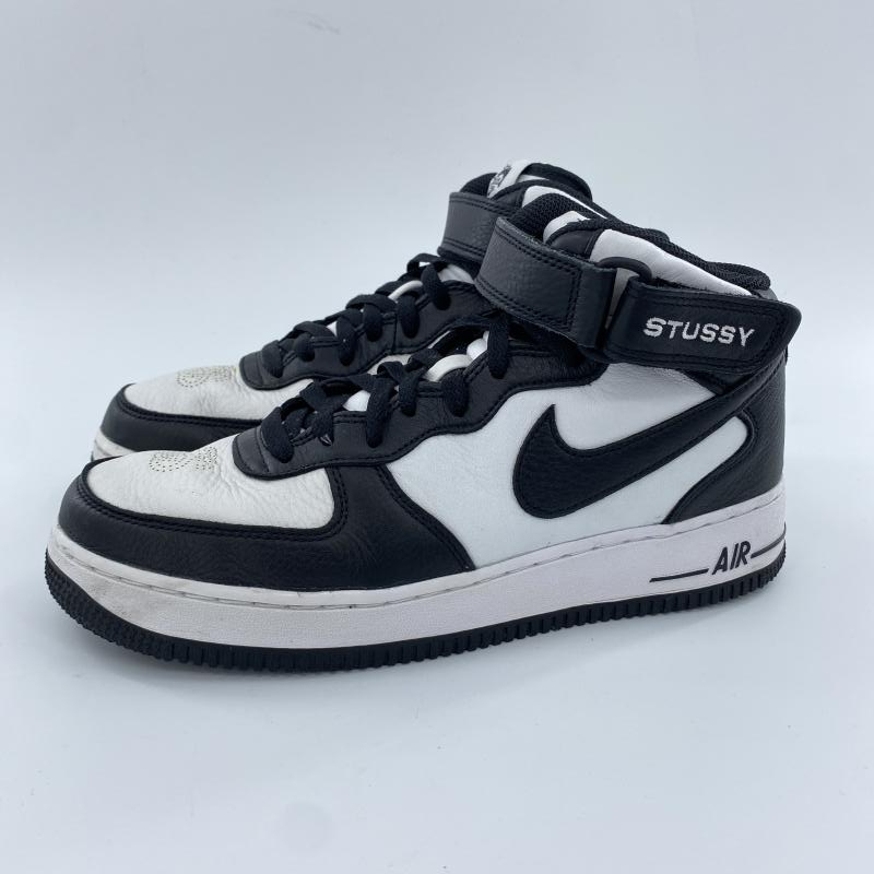 - 【中古】Stussy × NIKE AIR FORCE 1 Mid Black and Light Bone スニーカー 26cm DJ7840-002 黒 白 ステューシー ナイキ[240010480369]