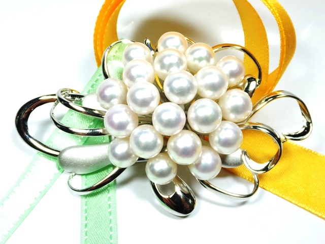 - 421.3◎卒業式 入学式 フォーマル人気コサージュ パール ブローチ 帯留め兼用 シルバー銀製 あこや真珠20個 8-8.5mm◎ジュエリーネット通販