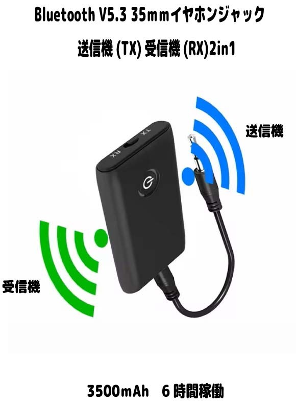 - Bluetooth V5.3 35mmイヤホンジャック 送信機(TX)受信機(RX) ワイヤレス送受信機 3500mAh ノイズキャンセリング エコーキャンセリング