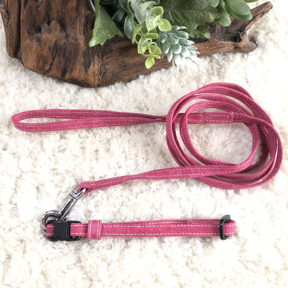 - ★同梱お得★首輪&リード・超小型・デニム無地・ストレート-No.17・ピンク♪