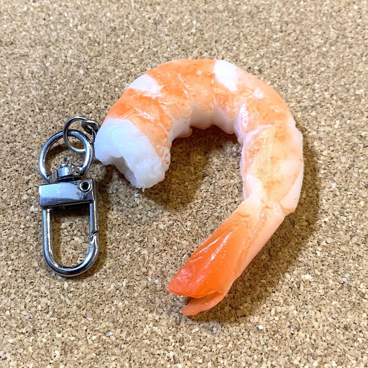 - 【送料無料】リアルなエビ ゆで海老 色 食品サンプル キーホルダー 約42mm-52mm 13g