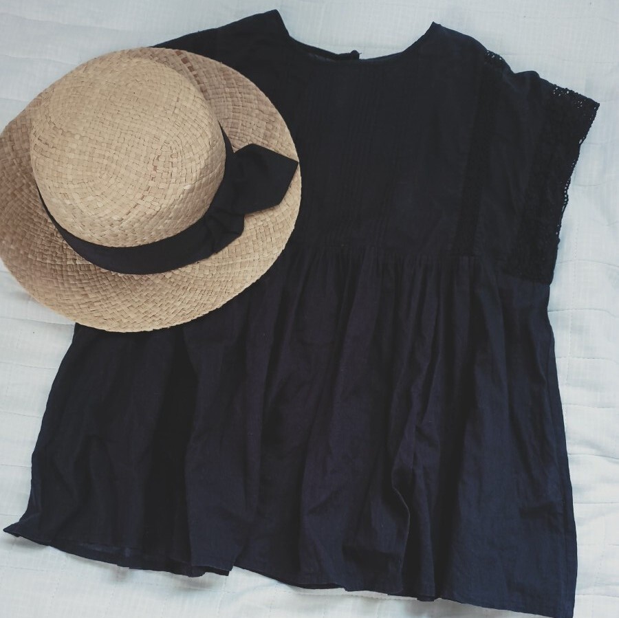 - オーブ インド製 フレンチスリーブ レース コットン カットソー ブラウス チュニック 黒 ナチュラル ロリータ