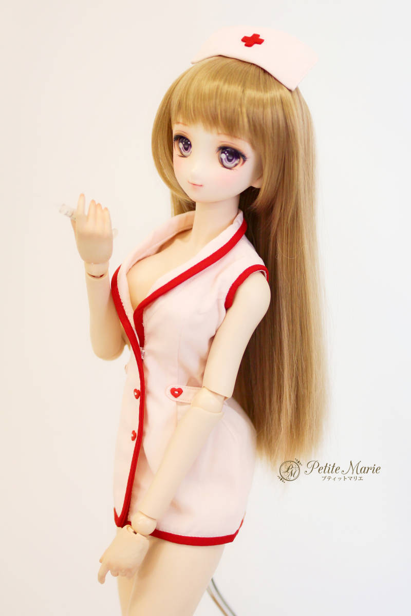 > 【Petite Marie】1/3 DDS DD(M~L胸)対応 ナース服 ピンク ワンピース 赤縁 セクシー ナース 60cm ドール BJD 人形服 【プティットマリエ】