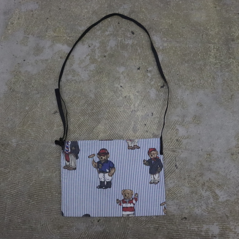 > BAG420 2000年代製 サコッシュ■00s ブルー ストライプ アニマル ベア― コットン リメイク 雑貨 小物 アンティーク 古着 激安 アメカジ