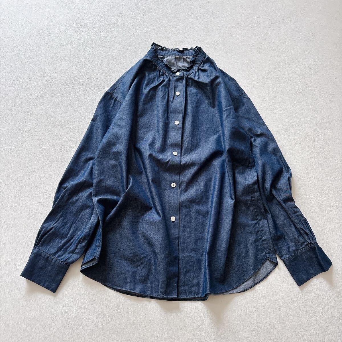 - ドレステリア フリルカラー デニムライク 長袖 38 ブラウス シャツ M DRESSTERIOR