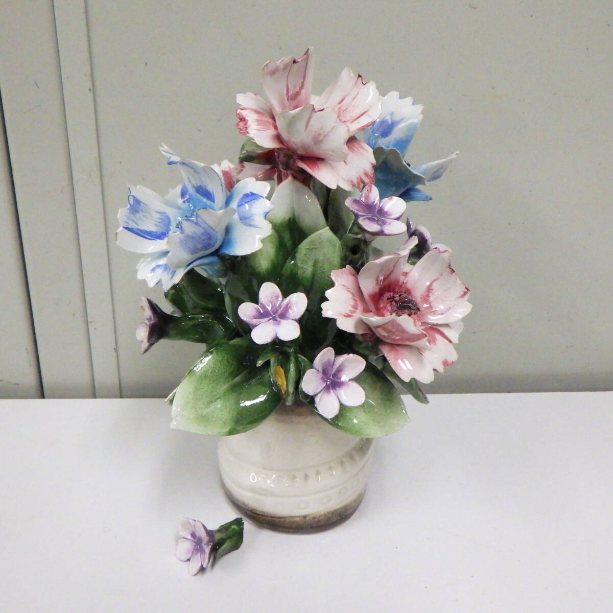 - 昭和 レトロ 陶器 カポディモンテ フランス 陶花 置物 ジャンク 欠けあり