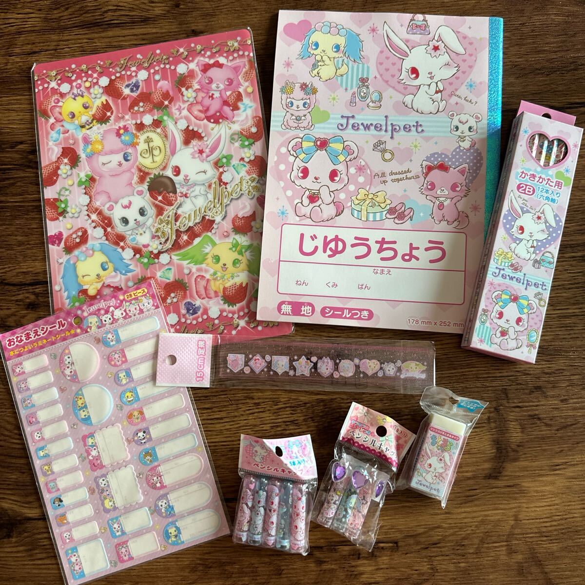 - 新品Sanrio ジュエルペット 文房具 じゆうちょう ノート シール 下敷き 消しゴム 定規 かきかたえんぴつ2b 平成レトロ 平成女児