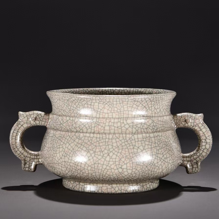 - 磁器 香炉 秘藏 宋代 コークス炉月白釉開錠双龍耳炉 酒器 茶器 唐磁 染付 陶磁器 收蔵品 古美味 時代物 古美術 古置物 珍品 中國文玩6.23