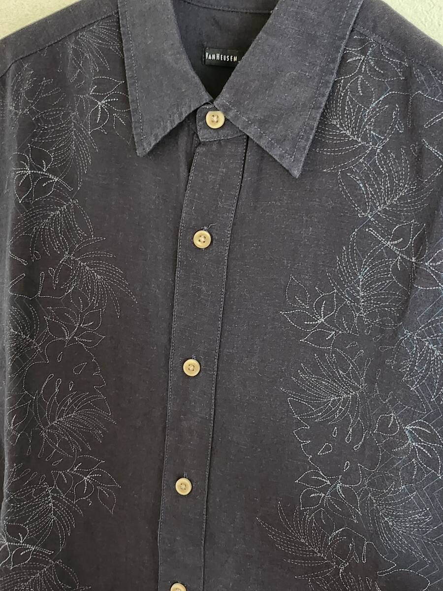 - VANHEUSENヴァンヒューゼンレーヨンリネンシャツ黒ブラックキューバ刺繍