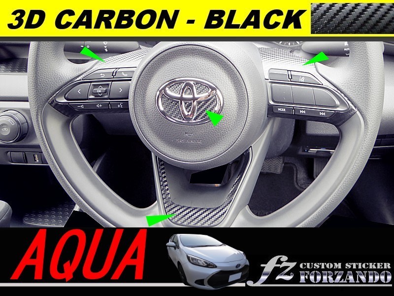 > アクア ステアリングパネルカバー 3Dカーボン調 ブラック 車種別カット済みステッカー専門店fz MXPK10 MXPK11 MXPK15 MXPK16