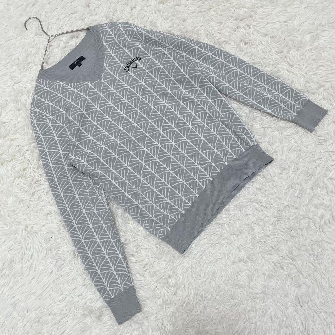 - 『キャロウェイ』 (M) イチョウ柄Vネックセーター 刺繍ロゴ クラシカル 古着