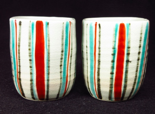 - 本物保証 北大路魯山人 有平縞文湯呑一対 二客 ロ印 本物保証返品OK 250620−11