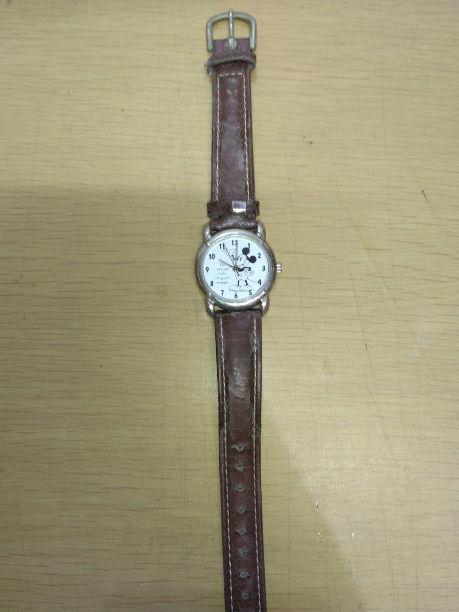 - ミッキー 腕時計 クォーツ ブラウン レザーベルト 電池切れ動作未確認 ジャンク品