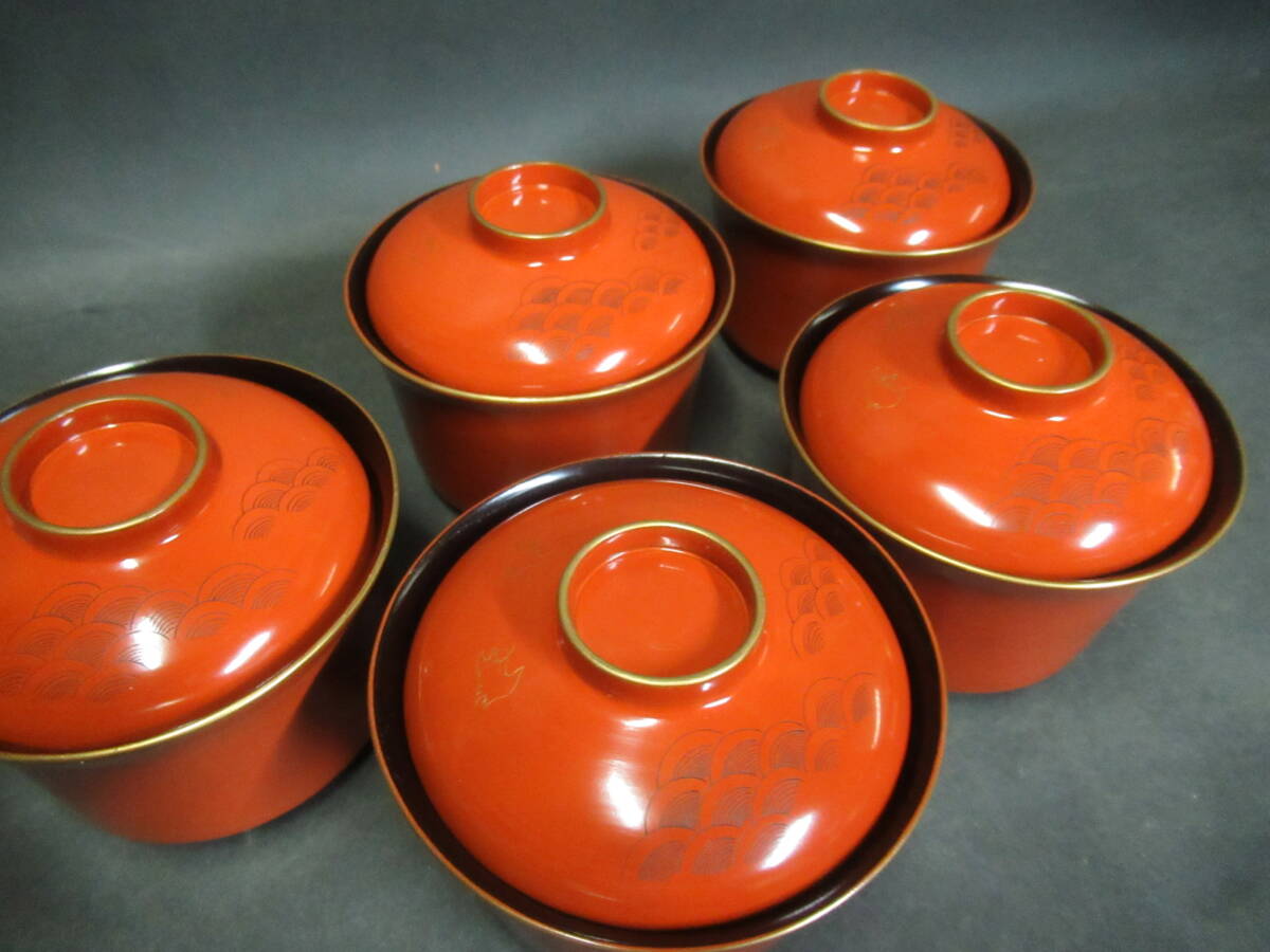 - 【広吉堂】極上品 輪島塗 小吸物椀 吸物椀 蒔絵 波千鳥 千鳥 木製 漆芸 美品 5客(K76P)