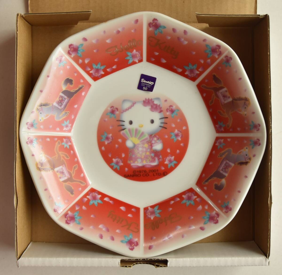 > サンリオ ハローキティ 飲茶がいっぱい 中華皿 八角皿 絵皿 ウマ 馬 チャーハン皿 陶磁器 レア品 超レア 激レア