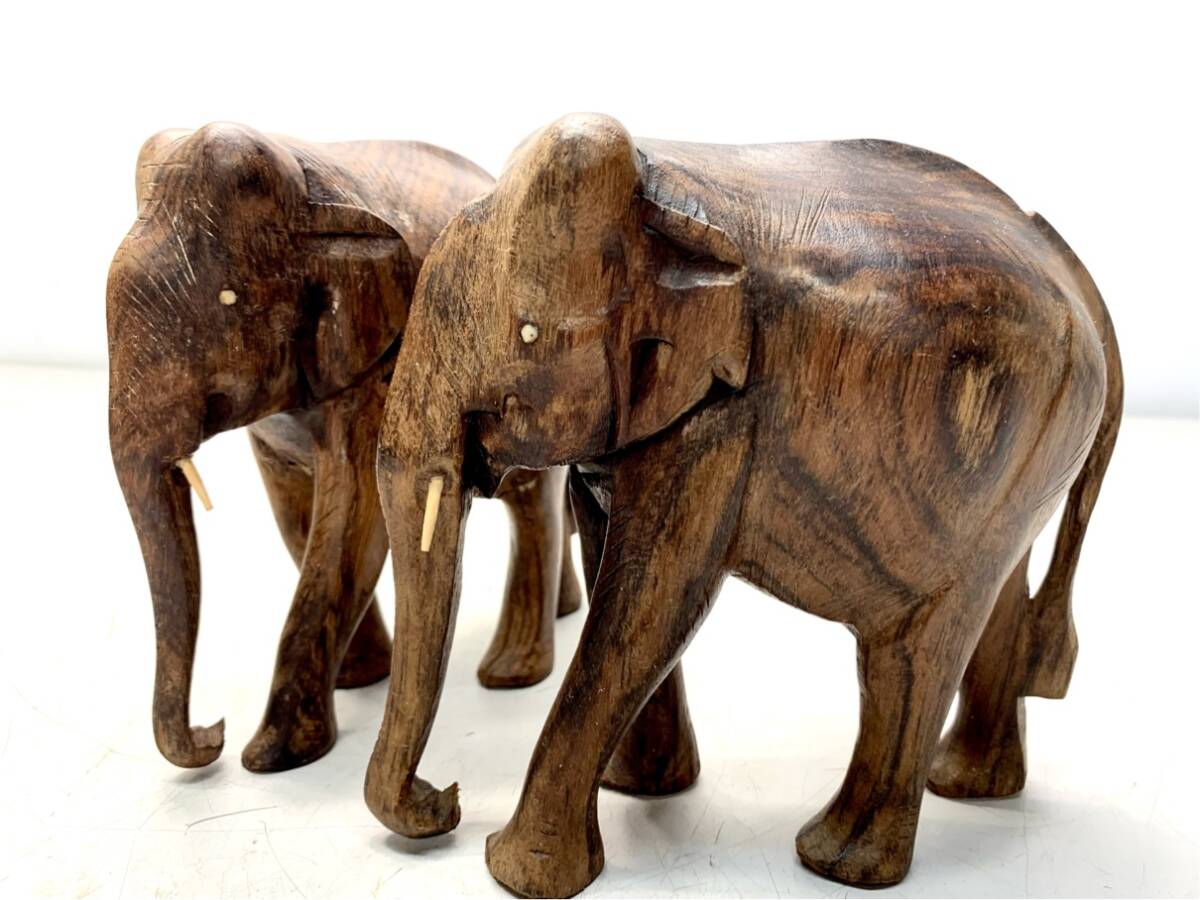 - 置物 ゾウ 木彫り 二体セット インド 像 インテリア オブジェ ヴィンテージ アンティーク レトロ A9302A06