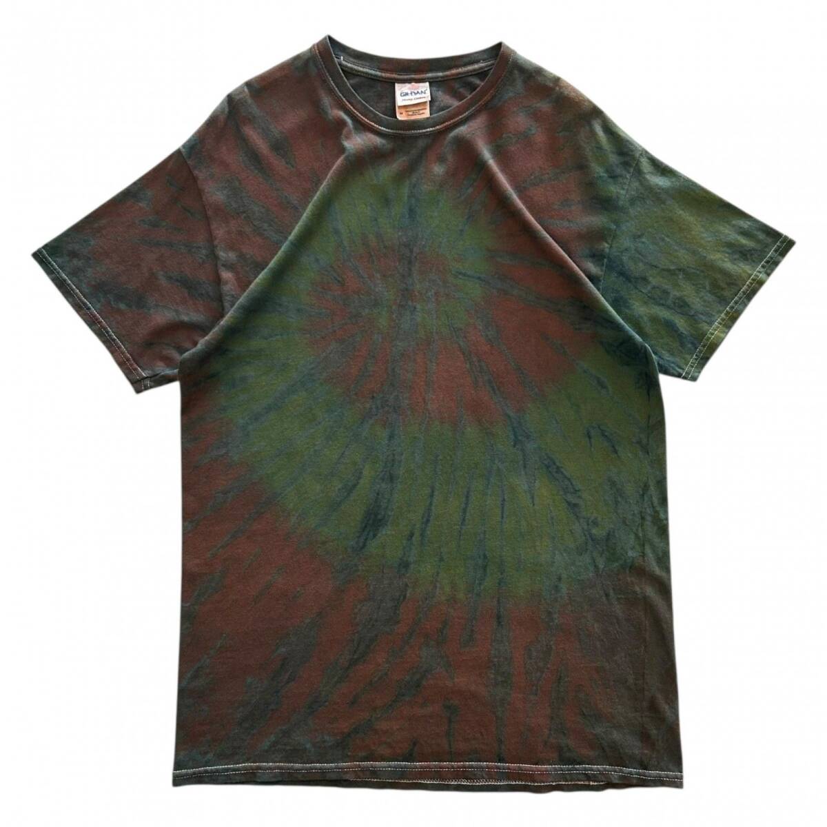 > M GIlDAN タイダイ染め 一点物 Tシャツ 神秘的 幻想的 渦 フェード グランジ ボロ リメイク 古着 ヘビーコットン グリーン オレンジ