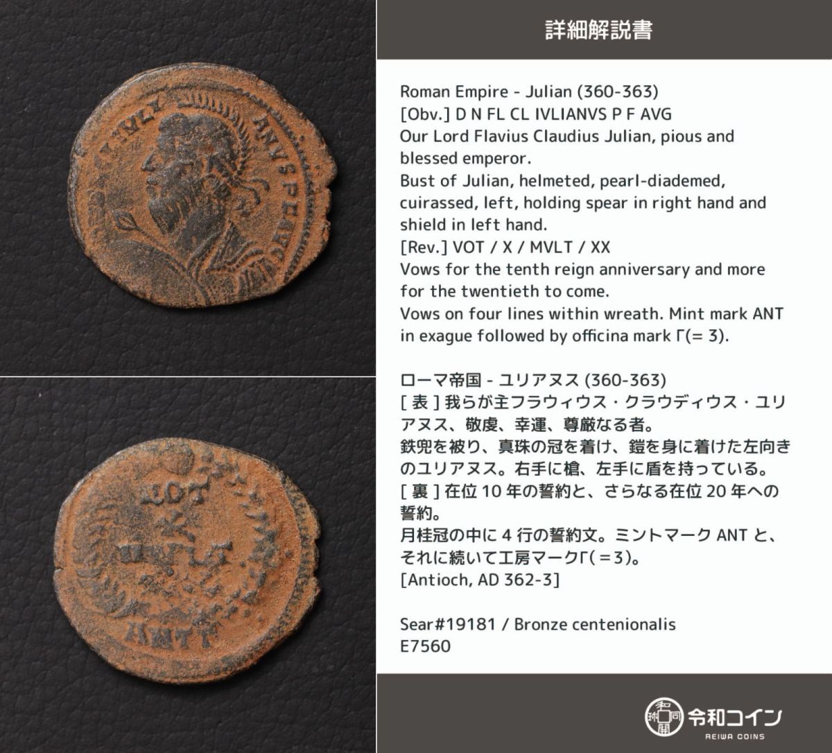 > *[令]ユリアヌス (360-363)古代ローマコイン【詳細解説カード付】古代ギリシャ、ビザンツ帝国[E7560]7l5