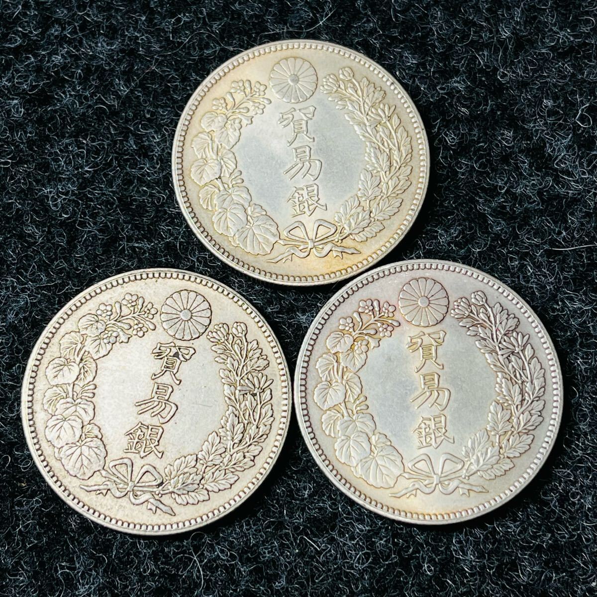 > お得!! 一圓 大日本 明治8.9.10年 3枚セット 新一円銀貨 大型銀貨 古錢 貿易銀 コレクション 収蔵品 送料無料 当日発送