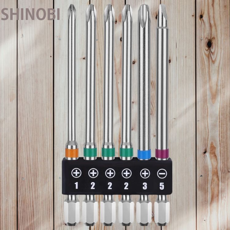 - プラスビット ドライバービットセット 6本組 100mm 片頭 6.35mm六角軸 磁気ドライバービット PH1 PH2 PH3電動ドライバー用