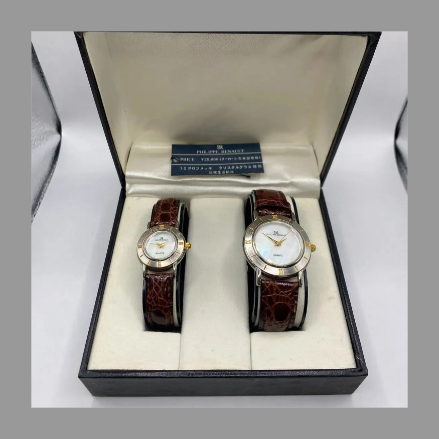 - ◎【定価28,000円!】PHILIPPE RENAULT フィリップ ルノー クォーツ式 ペア ウォッチ 大 小 文字盤 シェル ホワイト 虹色