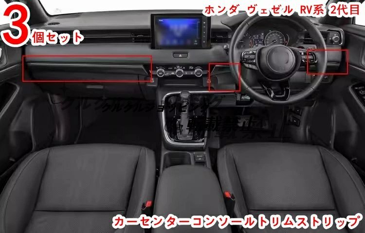 > ホンダ ヴェゼル RV系 2代目用 プレミアム ダッシュボード&センターコンソールガーニッシュ 3Pセット - 内装高級感アップ