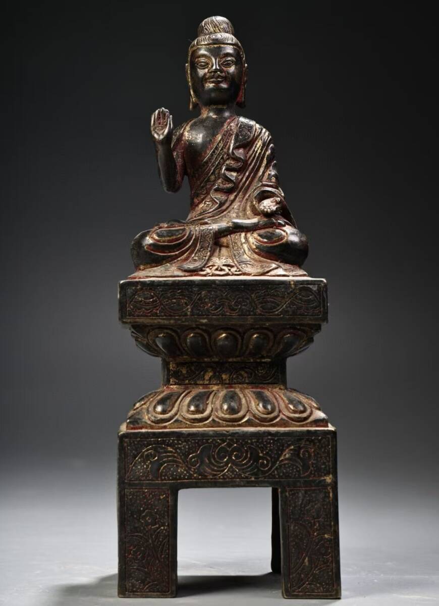 - 仏像 旧蔵 チベット古寺 古銅泥金北魏腰掛仏 銅製 銅琉金 唐物 收蔵品 時代物 古美術 古置物 希少珍品 供養品 文房具 仏教6.26