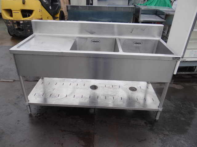 - K0467 茨城県常総市 MARUZEN 二槽水切付シンク 二槽シンク 2槽シンク マルゼン BSM2-156L 店舗 流し台 ステンレスシンク バックガードあり