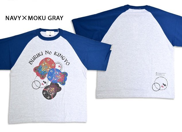 > ブリキの金魚半袖Tシャツ◆喜人 ネイビー×杢グレー Lサイズ KJ-52012 和柄 和風 きんとと 玩具 昭和 レトロ ラグラン きじん