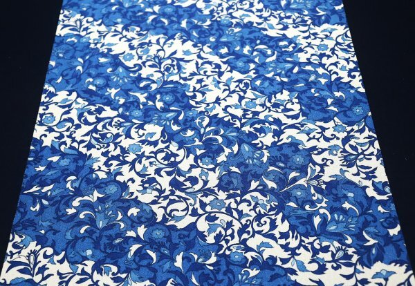 - 【京わぎれ】 東レ シルック ちりめん小紋 はぎれ 斜め取唐花文様 乳白色地×藍色濃淡配色 約3.5m ②
