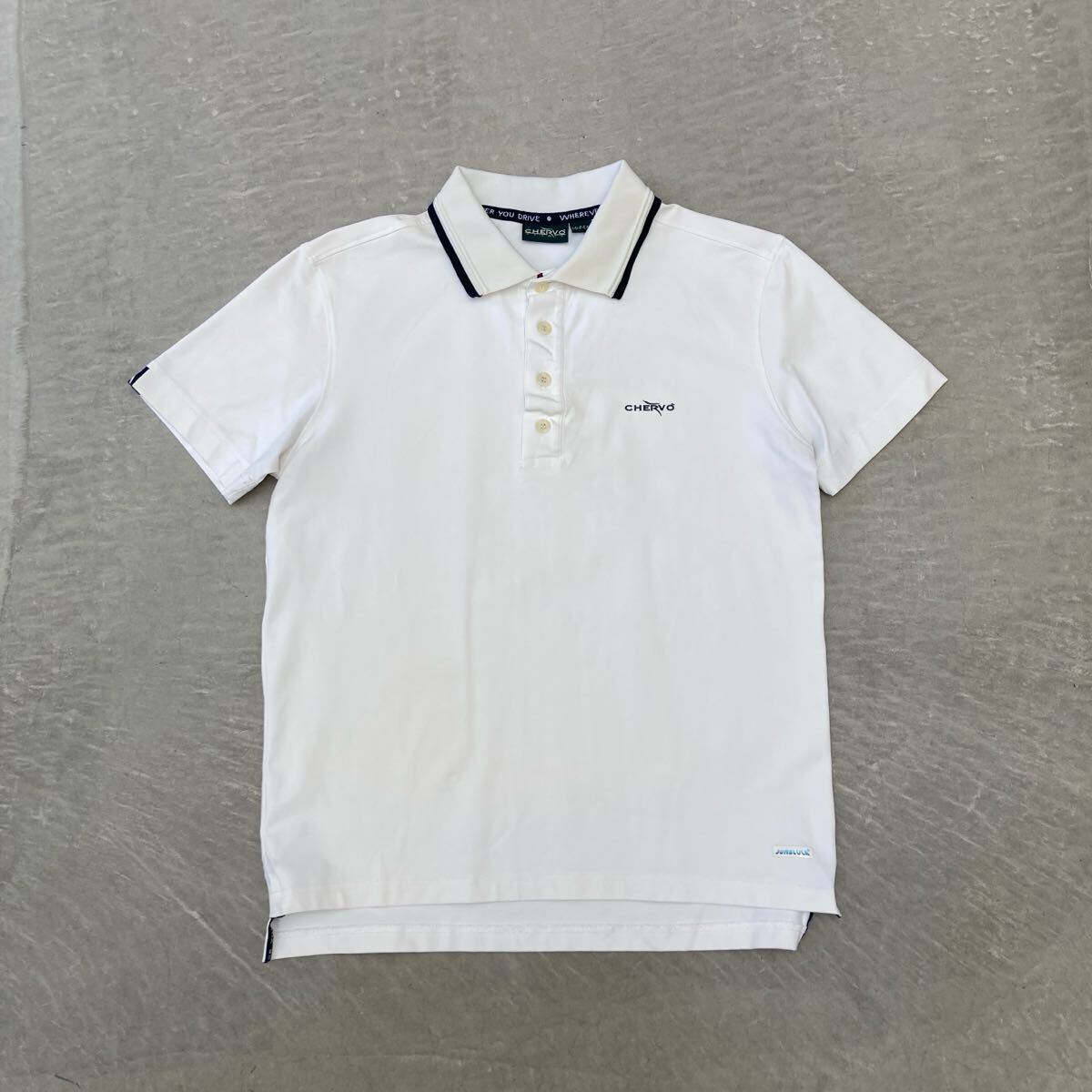 - 【美品】 シェルボ◆ゴルフ◆ポロシャツ ナイロン ホワイト 44 CHERVO ゴルフシャツ 白 半袖ポロシャツ メンズ トップス