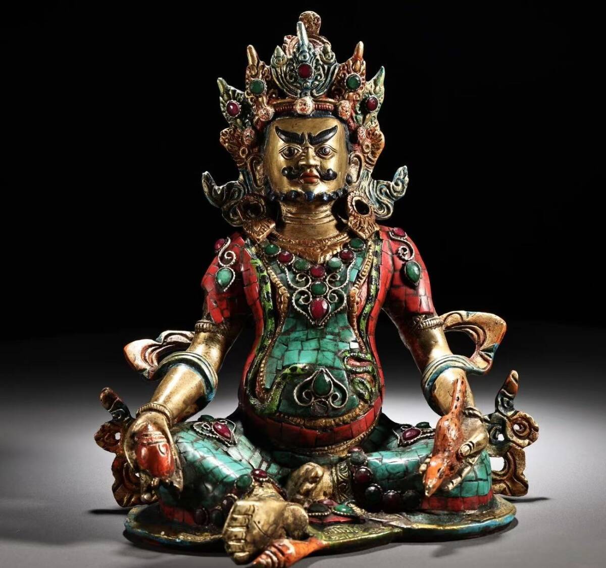 - 仏像 清代 旧蔵 純銅モザイク宝石彩色仏教黄財神 チベット古寺 銅製 唐物 收蔵品 時代物 古美術 古置物 希少珍品 供養品 文房具 仏教6.26