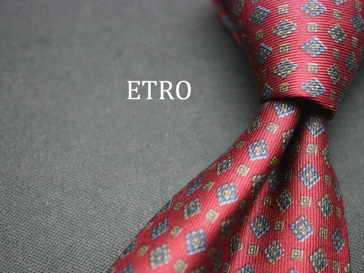 - 美品【ETRO エトロ】 E2593 ワイン系 SILK ブランド ネクタイ 古着 良品