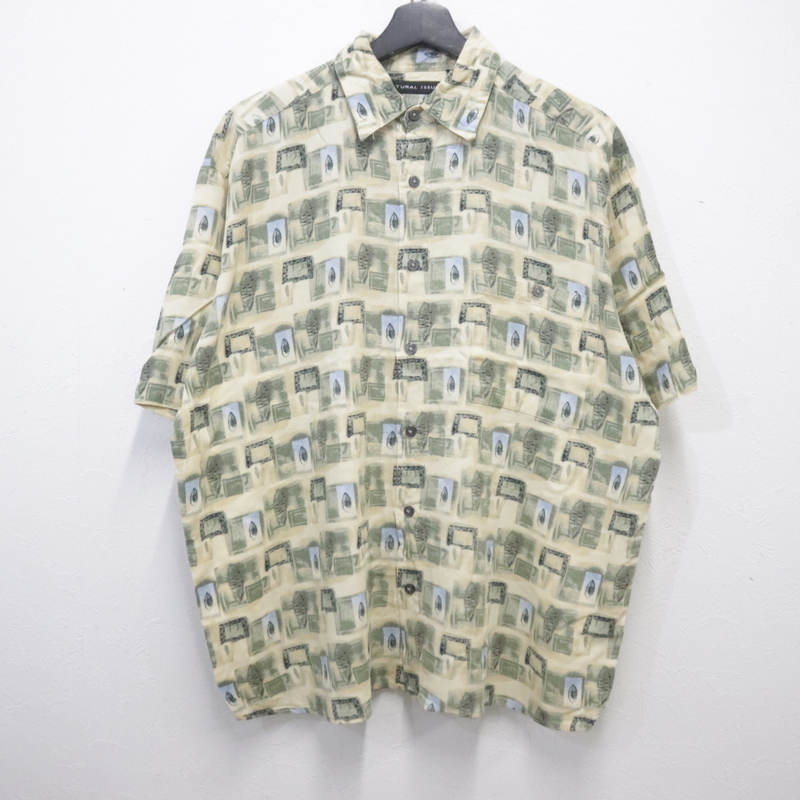 - W434 90sビンテージ NATURALISSUE 半袖シャツ■1990年代製 表記Mサイズ イエロー 黄色 アメカジ レーヨン 古着 古着卸 オールド 激安 希少