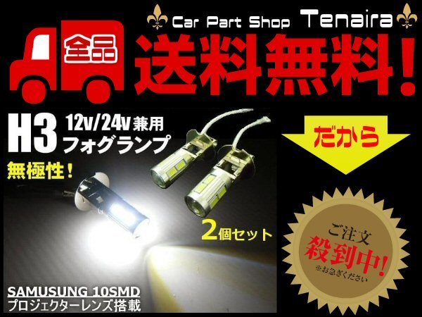 > 24V 12V 兼用 H3型 プロジェクター搭載 白色 SMD LED フォグランプ 2個セット メール便送料無料/6