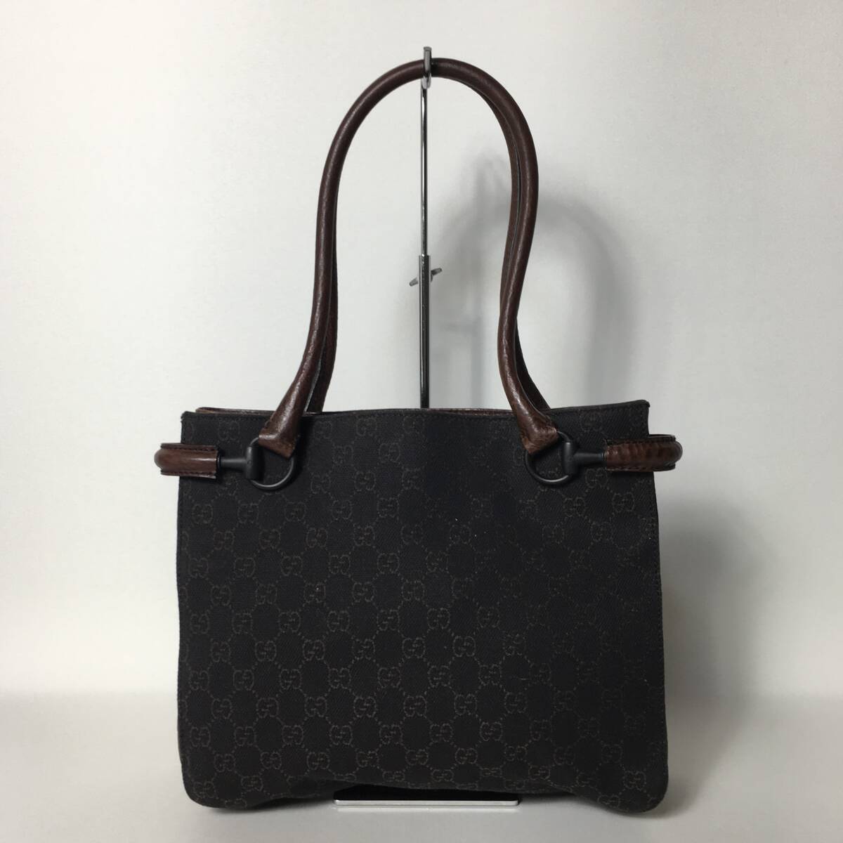 - 76B137|美品|グッチ GGキャンバス ハンドバッグ ダークブラウン