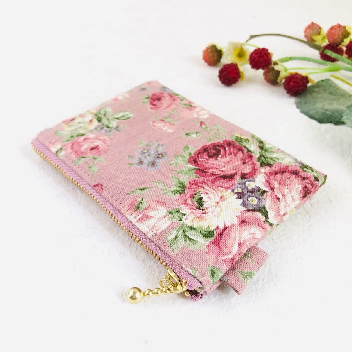 - アンティークローズのカードポーチ フラットポーチ カードケース ハンドメイド 小物入れ コインケース 薔薇