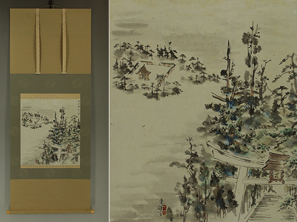 - 【真作】池田遙邨【久世社】◆紙本◆共箱◆改装済掛軸 y02149