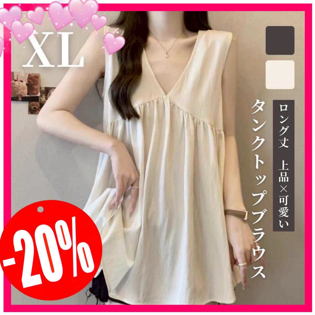 - ノースリーブ ロング丈XL vネック Aライン フレア チュニック ホワイト フォロー割開催→コメントで100円お値引き!