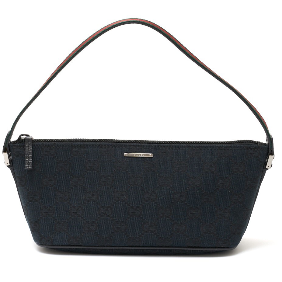 - GUCCI グッチ GGキャンバス シェリーライン ポーチ 141809 ミニ ハンドバッグ レザー ブラック×グリーン×レッド×シルバー レディース