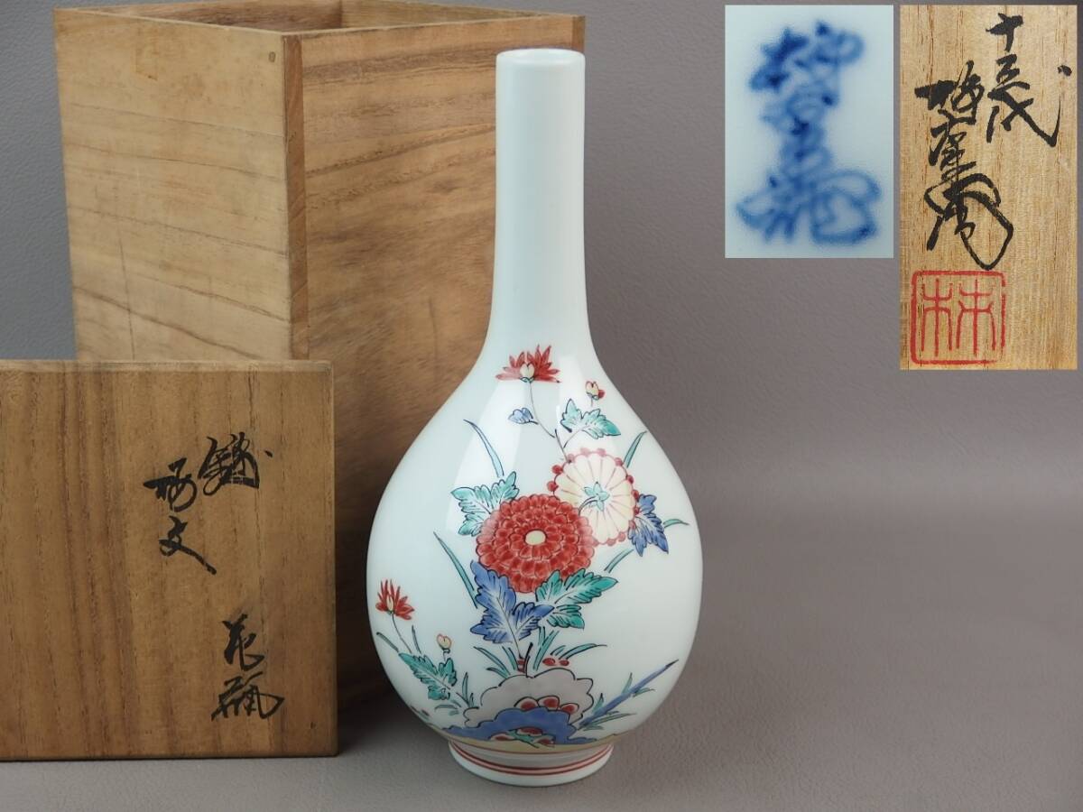> 【骨董・茶道具】★十三代 酒井田柿右衛門★★錦梅文花瓶 gl062stl.7 花入 花生 花道 華道
