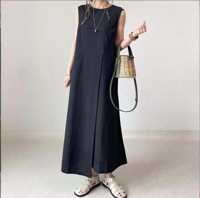 - 人気 新品 人気 夏物 ワンピース ロングスカート シンプルな袖なしマキシ丈ワンピコットン 黒