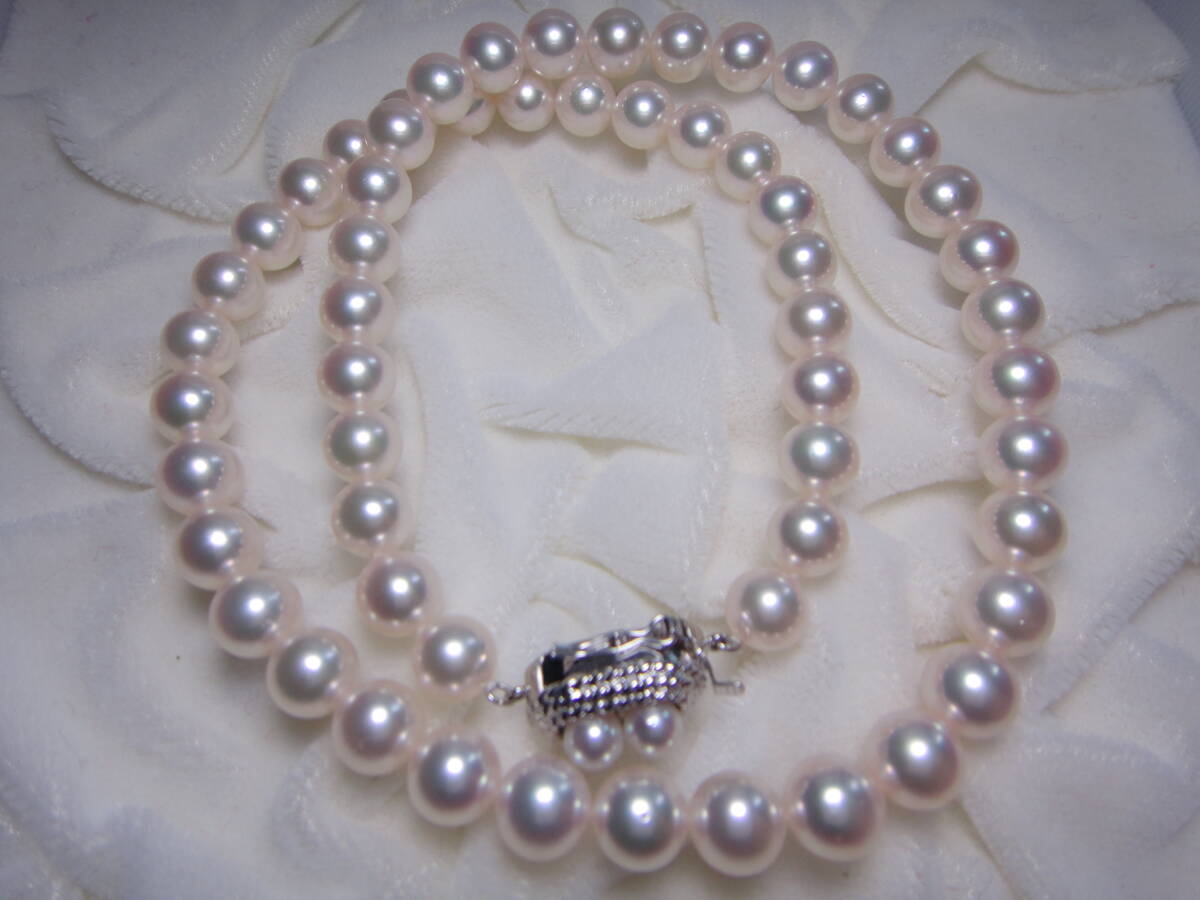 - 田崎真珠 本真珠 アコヤ真珠 ネックレス テリ最強 花珠級 WGK14刻印 約7~7.2㎜ 約43㎝ ケース・外箱付 ヴィンテージ Y722