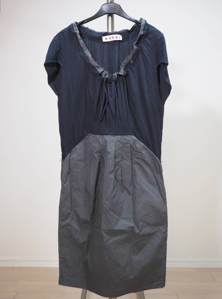 - marni マルニ 09SSフレンチスリーブバイカラーワンピース36紺×灰 Italy製