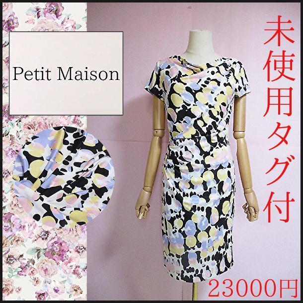 > 【未使用タグ付】Petit Maison ワンピース 美シルエット 9号 半袖 ストレッチ 伸縮性 23000円 通勤お食事会 お呼ばれ プチメゾン
