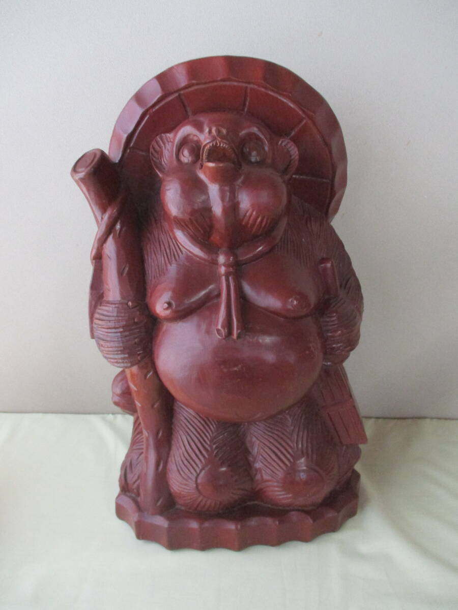 - 大きな「狸の置物(木彫り)」一木造り : 縁起物・インテリア・オブジェ・タヌキ・置物